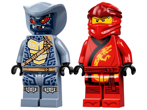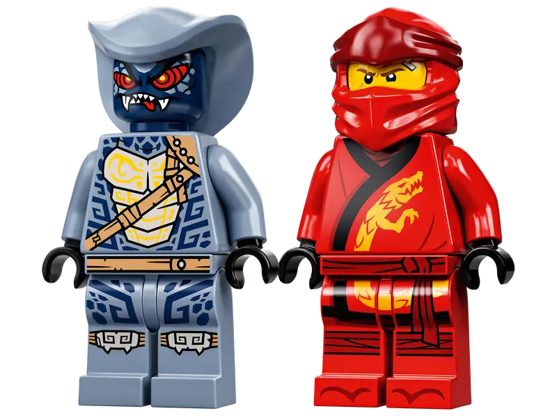 - Das Spielset beinhaltet 2 Minifiguren – den Ninja Kai und den bösen Schlangenkrieger Rattla – sowie ein Starterelement, das Kinder rasch bauen und spielen lässt.