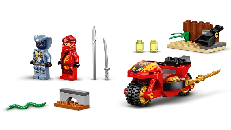 - Das LEGO® NINJAGO® Set – Kais Feuer-Bike (71734) bringt Kindern das Bauen bei. Ein Spielzeugmotorrad und ein funktionierendes Katapult lassen die Kinder dann spannende Ninja-Abenteuer nachstellen.
