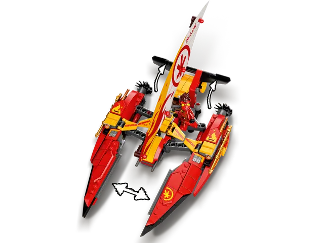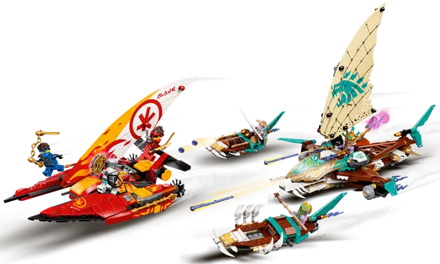 Mit dem LEGO® NINJAGO® Spielset „Duell der Katamarane“ (71748) erwarten Ninja-Fans packende Abenteuer auf hoher See. Einer der beiden enthaltenen Katamarane lässt sich in 3 separate Boote zerteilen. Eines dieser Boote hat ein Minigefängnis an Bord. In dem Set ist alles vorhanden, was Kinder für fantasievolle Abenteuer brauchen.