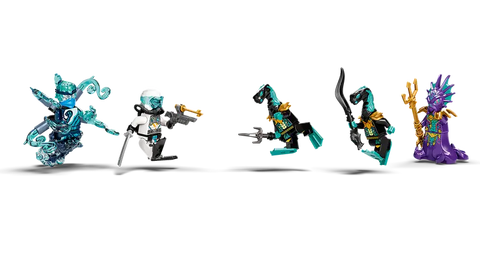 - Freu dich auch auf weitere NINJAGO® Sets zu dieser Staffel der TV-Serie: Lloyds Hydro-Mech (71750), Tempel des unendlichen Ozeans (71755) und Wassersegler (71756).