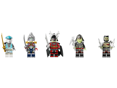 Dieses Bauset beinhaltet 5 Minifiguren: Zane und Pixal können es mit ihren Schwertern mit dem Skelett-Ritter, dem Skelett-Krieger und dem Skelett-König aufnehmen. Jeder der 3 Bösewichte ist mit einer Waffe aus der Ausrüstung des grünen Skelett-Kriegers ausgerüstet. Das böse Trio versammelt sich gern in dem Tempel aus LEGO Steinen.