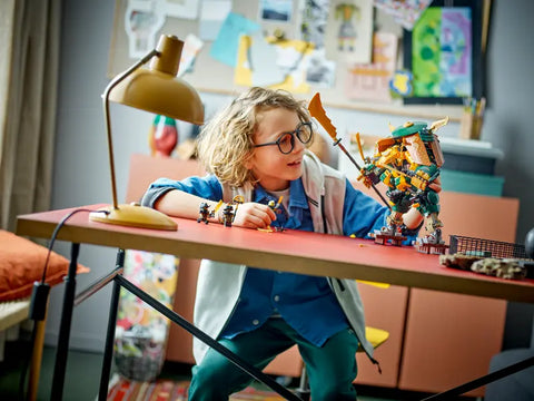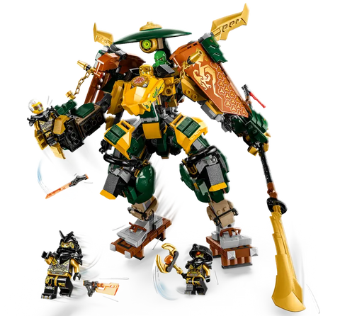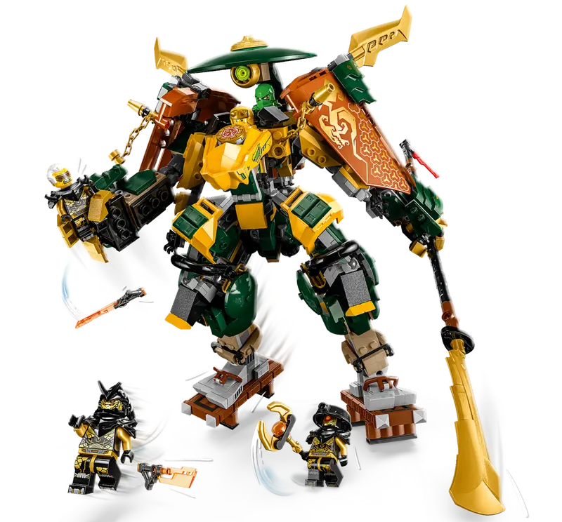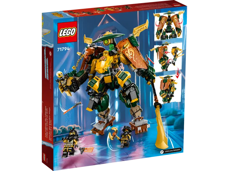 Mit Lloyds und Arins Training-Mechs (71794) können Kinder ab 9 Jahren tolle Trainingseinheiten und packende Actionszenen aus der TV-Serie NINJAGO® Dragons Rising nachstellen. Dieses beispiellose Bauset beinhaltet die beweglichen Mechs von Ninja-Meister Lloyd und seinem Schüler Arin, die sich für unzählige weitere Spielmöglichkeiten zu einem größeren und noch besser ausgerüsteten Mech vereinen lassen.