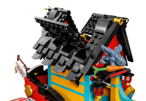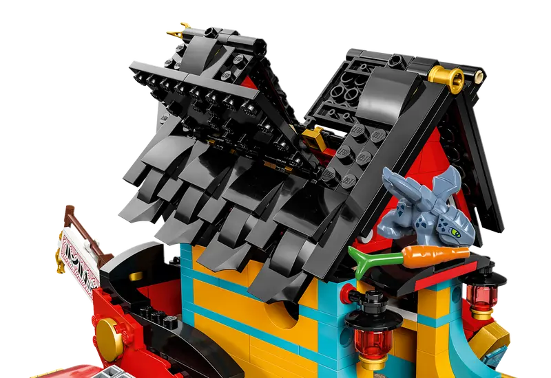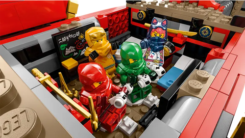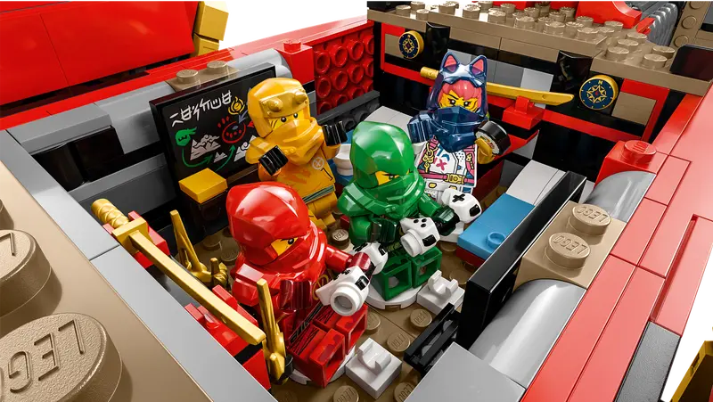 - Abnehmbares Dach: Nimm das Dach ab, um den Navigationsraum und ein Spielzimmer mit Spielautomaten für die Ninja preiszugeben