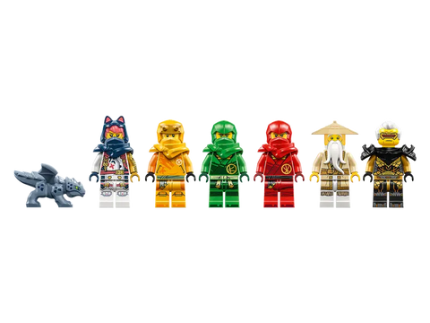 Dieses Premium-Spielset beinhaltet ein Modell von Baby Riyu sowie 6 Minifiguren: Meister Wu mit seinem Stab, Arin mit einem Enterhaken, Sora, Lloyd und Kai, die jeweils ein goldenes Katana schwingen, sowie Rapton mit einem kaiserlichen Schwert und seinem eigenen Enterhaken. Mit diesen tollen Minifiguren können fantasievolle Kinder packende Szenen aus der TV-Serie NINJAGO® Dragons Rising nachstellen.