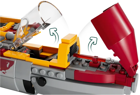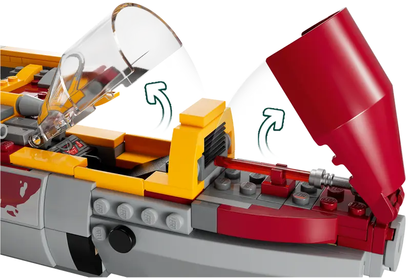 - Shin Hatis Starfighter: Das Modell verfügt über ein aufklappbares LEGO® Minifiguren-Cockpit, 2 Shooter, Staufächer für Shin Hatis und Baylan Skolls Lichtschwerter sowie für eine Blaster-Pistole