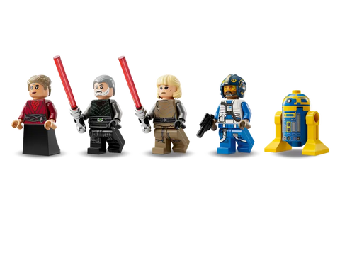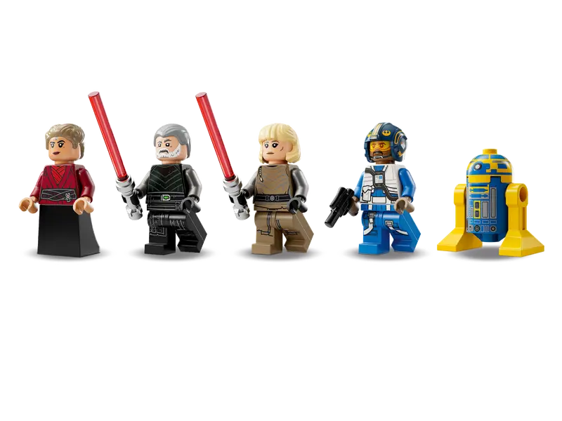 - 4 LEGO® Minifiguren und ein LEGO Droide: Baylan Skoll und Shin Hati, beide mit Lichtschwertern, Morgan Elsbeth und Captain Porter mit Blaster-Pistole sowie ein Astromech-Droide der New Republic