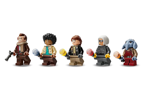 • 5 LEGO® Star Wars™ Charaktere: Die LEGO Minifigur Jod mit klassischem Blaster sowie die LEGO Minifiguren Wim, KB, Fern und Neel, die alle mit einer baubaren Taschenlampe ausgerüstet sind