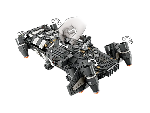 • Authentische Funktionen: Ein Cockpit, eine Kabine mit Sitzen für 4 LEGO® Minifiguren, Triebwerke, die man zum Starten/Landen oder fürs Fliegen drehen kann, 2 Shooter sowie 2 drehbare Geschütztürme mit jeweils 2 Shootern laden zum Spielen ein