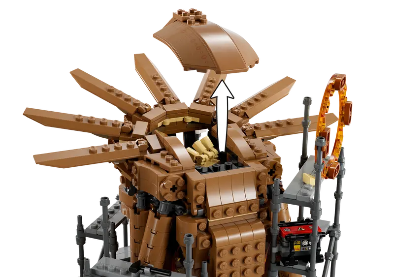 • Jede Menge Möglichkeiten zum Spielen und Ausstellen: 3 Minifigur-Stützen für Actionszenen in der Luft, ein abnehmbares Dach gibt Sandman preis, ein rückseitiger Portalzugang lässt sich aufklappen und ein weiches Netz wickelt Bösewichte ein