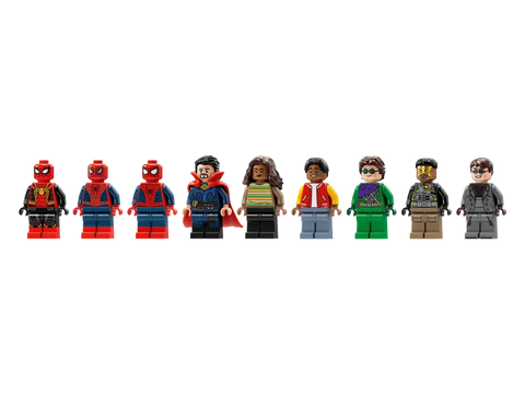 Dieses Set beinhaltet neben einem 360-Grad-Modell auch eine fantastische Kollektion an LEGO Marvel Minifiguren, darunter auch 3 Versionen von Spider-Man: Spider-Man als freundlicher Nachbar (Tobey Maguire), The Amazing Spider-Man (Andrew Garfield) und Spider-Man (Tom Holland). Die anderen Minifiguren sind Electro, Doctor Strange, Green Goblin, Ned, MJ und Doc Ock. Zahlreiche Funktionen bieten unzählige Spielmöglichkeiten, unter anderem die 3 Minifigur-Stützen für Actionszenen in der Luft, ein abnehmbares Dach, unter dem Sandmans Hand zum Vorschein kommt, ein aufklappbarer rückseitiger Zugang zu einem Portal und ein weiches Netz zum Umwickeln von Minifiguren. Zusätzlichen digitalen Bauspaß bietet die intuitive LEGO Builder App, die Baumeister 3D-Modellansichten vergrößern und drehen und ihren Baufortschritt verfolgen lässt.