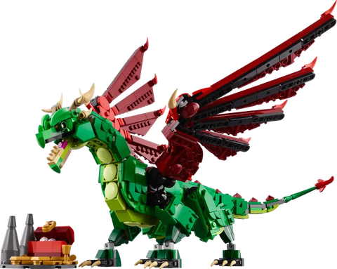 LEGO® Creator Grüner Drache (31161) ist eine tolle Überraschung für deinen kleinen Zeitreisenden. Für Rollenspiele und Abenteuer im Mittelalter beinhaltet das Spielset für Jungen und Mädchen ab 9 Jahren einen Drachen. Die Figur hat zwei beweglicheFlügel, die sich ein- und ausklappen lassen und rauf und runter schlagen können. Außerdem kann der Drache Knöchel, Zehen, Hals, Kiefer, Hüften und Schultern bewegen. Und die ebenfalls enthaltene Schatzkiste bietet sogar noch mehr Spielspaß.