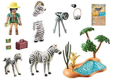 Das PLAYMOBIL Wiltopia Zebra-Set lässt Kinder die faszinierende Welt Afrikas entdecken. In diesem nachhaltigen Set begleitet die Forscherin Sofia Palmer eine Zebramutter und ihr Fohlen an der Wasserstelle. Um unbemerkt Fotos schießen zu können, schlüpft Sofia in ein originelles Zebra-Kostüm und macht sich mit Kamera und Zubehör auf die Pirsch. Ideal für fantasievolle Abenteuer, bei denen Kinder ihre Kreativität und Liebe zur Natur entfalten können.