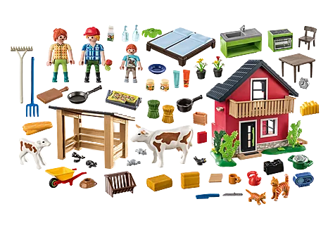 Das PLAYMOBIL Bauernhaus bringt den Charme des Landlebens direkt in dein Kinderzimmer. Das zweistöckige Haus ist mit einem gemütlichen Wohn- und Schlafbereich ausgestattet, in dem die PLAYMOBIL-Figuren kochen, spielen und entspannen können. Die große zweiflügelige Tür führt direkt auf die Terrasse – perfekt, um frische Luft zu schnappen und die schöne Aussicht zu genießen.